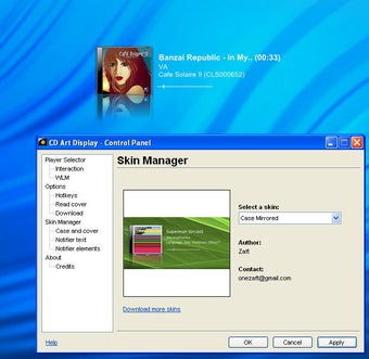 CD Art Display es una mini-ventana de control en forma de caja de CD en la que además se muestra el título de la canción y la portada del disco al que pertenece la canción que esté sonando en ese momento.
